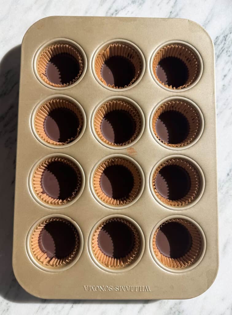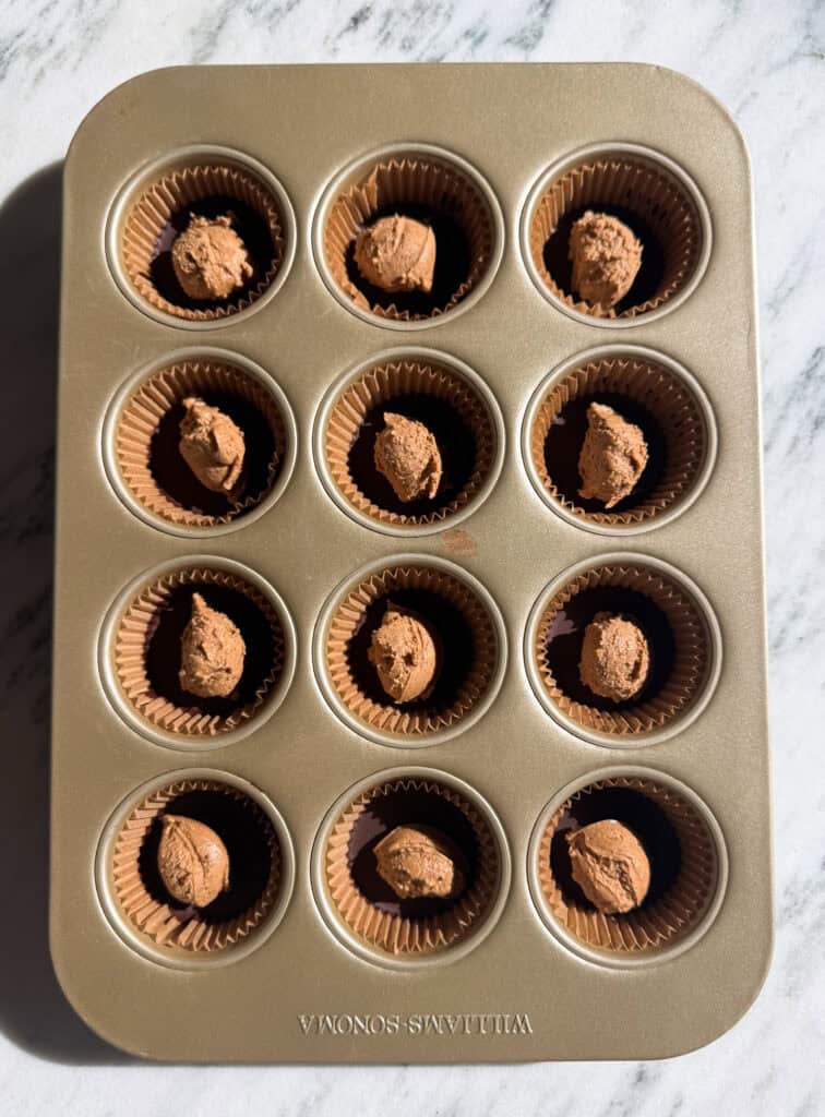 - Spoon a dollop to the middle of the cups and flatten with a spoon.