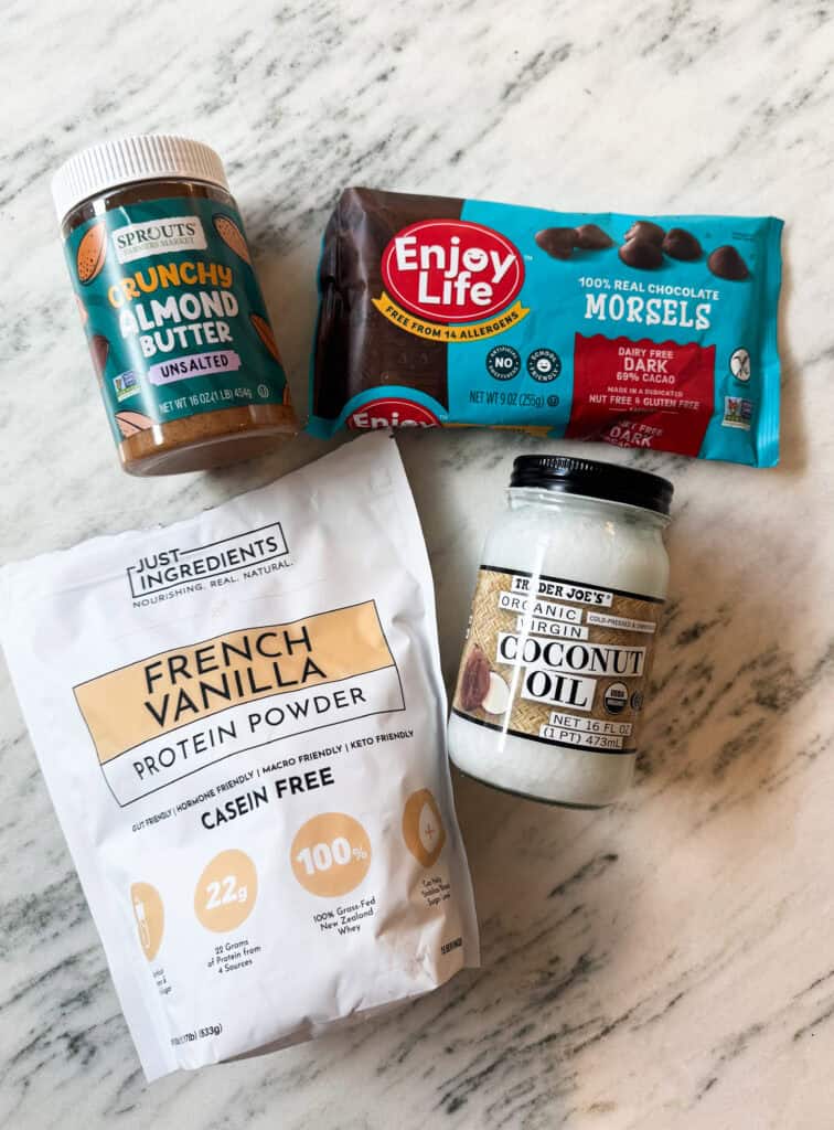 These Almond Butter cups are so easy to make, only requiring 5 main ingredients. The addition of protein powder is optional, so 6 ingredients total if you decide to add that.